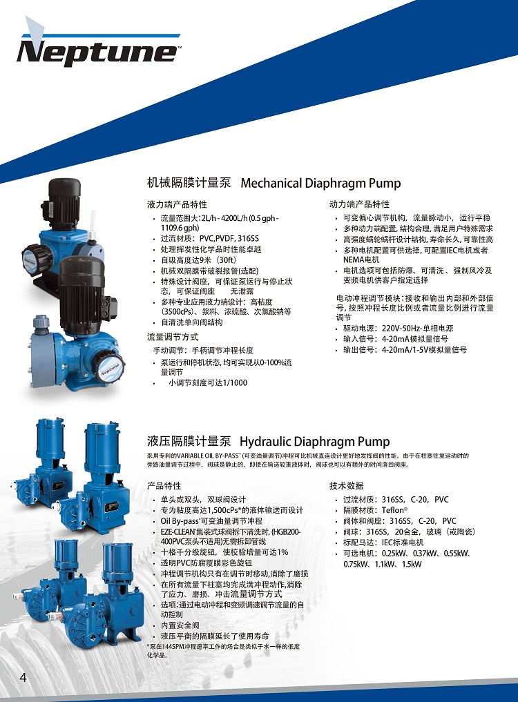 ? 標(biāo)準(zhǔn)計(jì)量泵可以輸送水樣澄清介質(zhì)至粘度達(dá)到2,500cPs的介質(zhì)