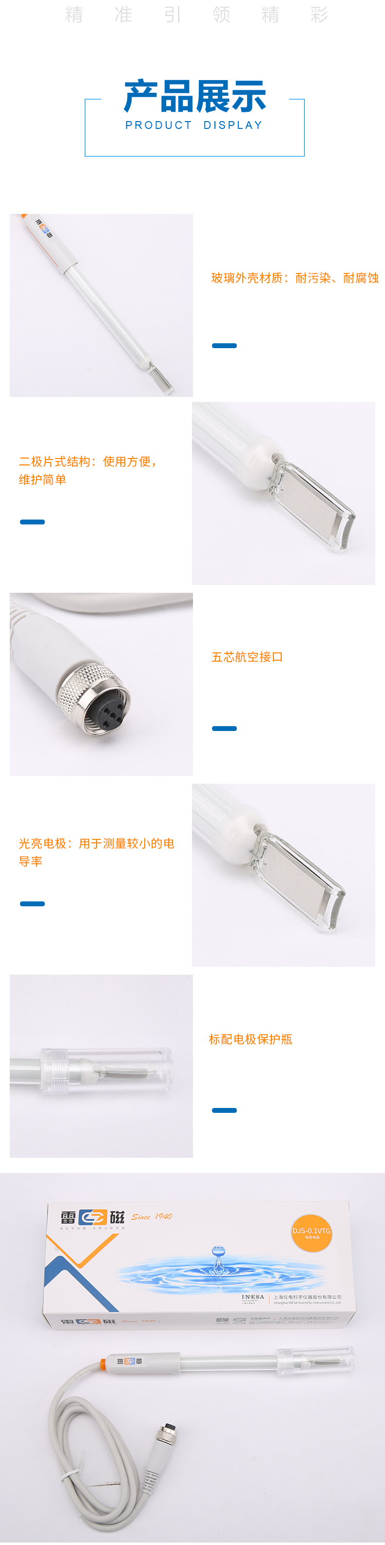 【雷磁】 實驗室電導率傳感器測試儀探頭 DJS-0.1VTC型電導電極【鉑黑】