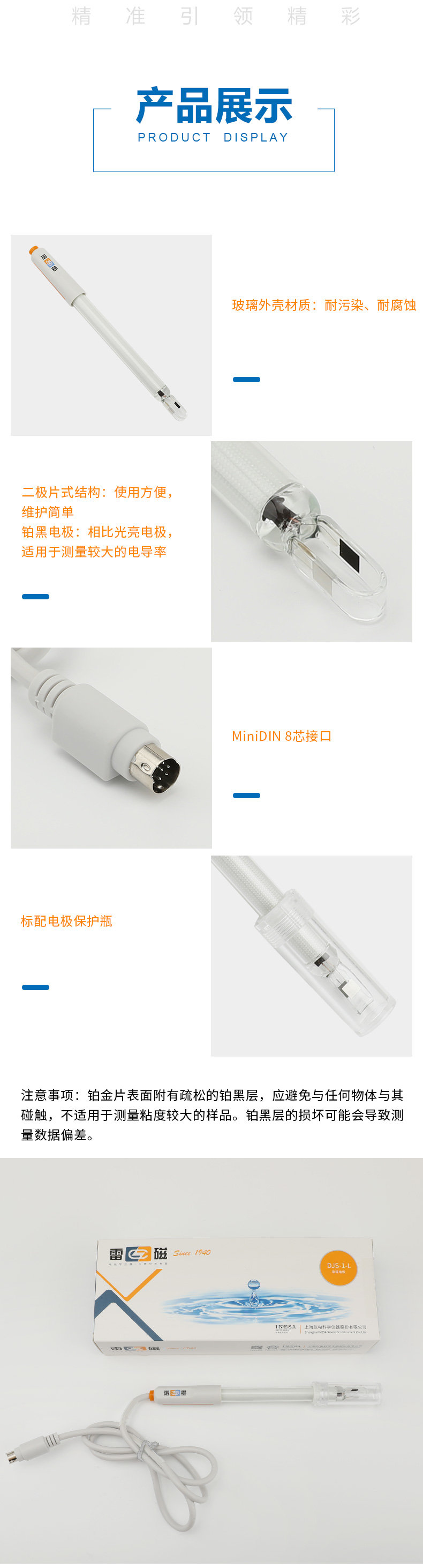 【雷磁】 實驗室電導率傳感器測 DJS-1-L型電導電極(鉑黑)