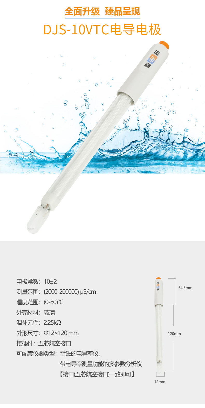 【雷磁】 實(shí)驗(yàn)室電導(dǎo)率傳感器 DJS-10VTC 型電導(dǎo)電極【鉑黑】