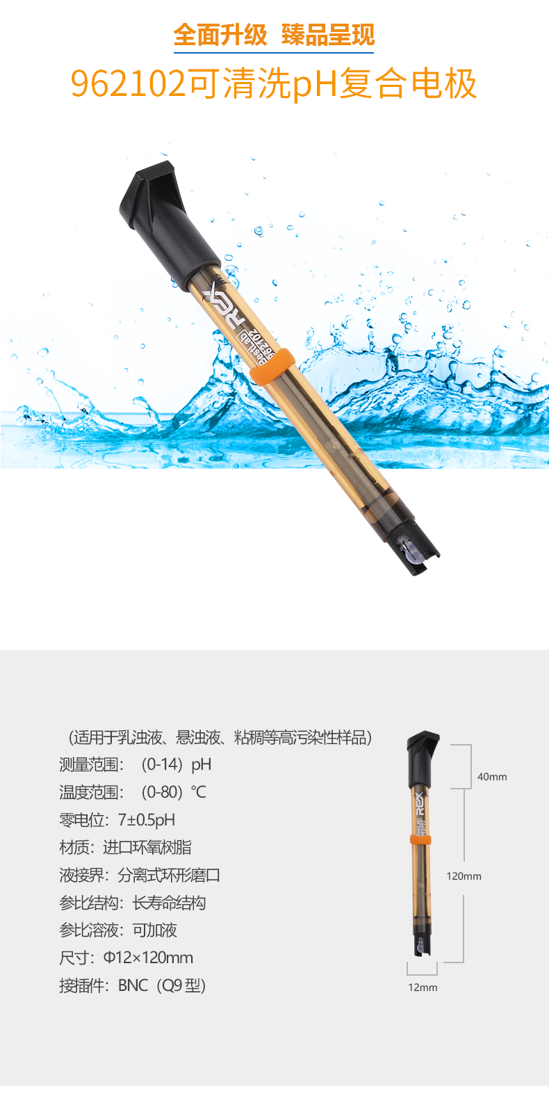 【雷磁】雷磁高端ph電極高精度 962102可清洗ph復合電極