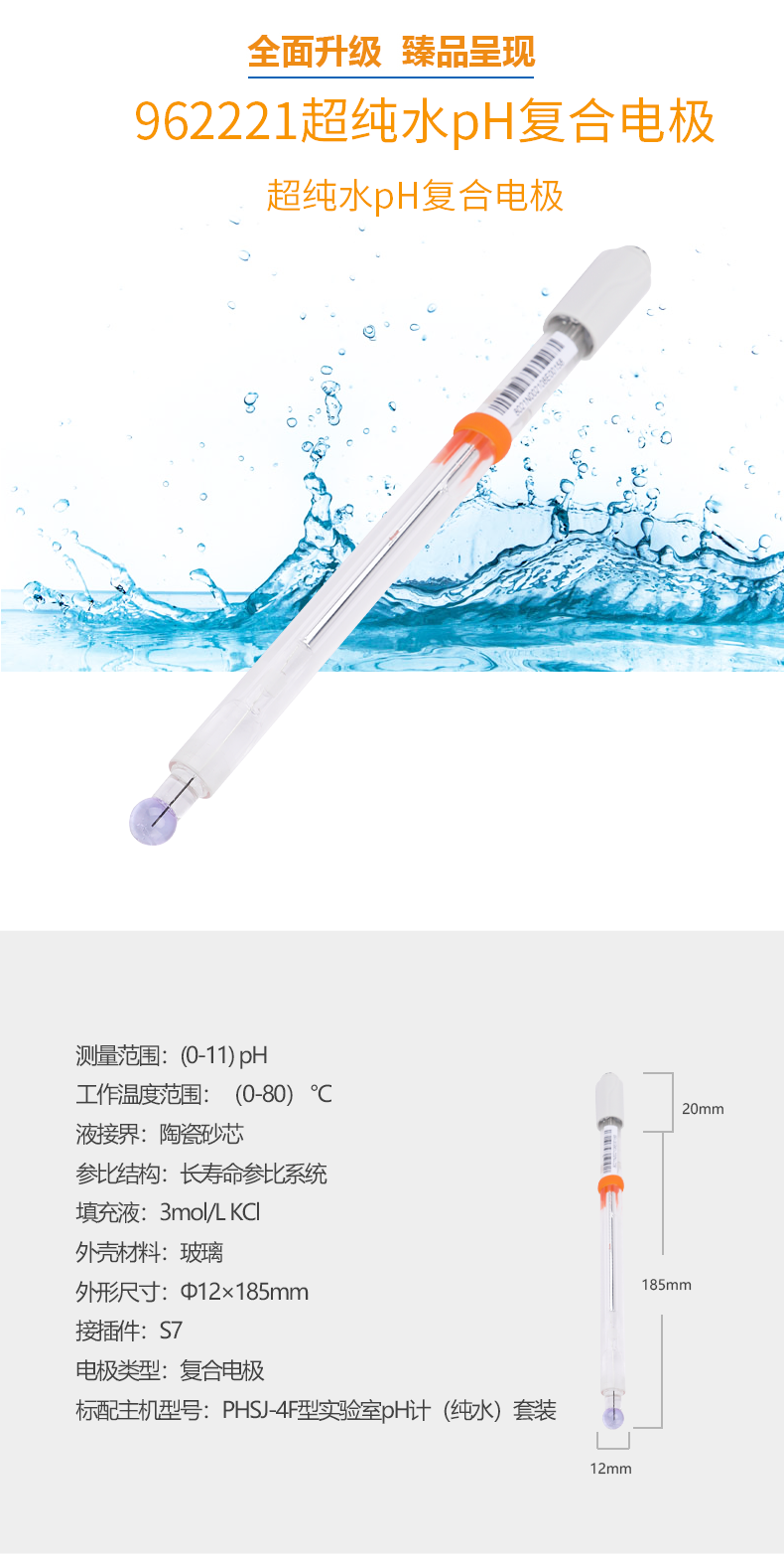 【雷磁】高端ph電極962221超純水ph復(fù)合電極