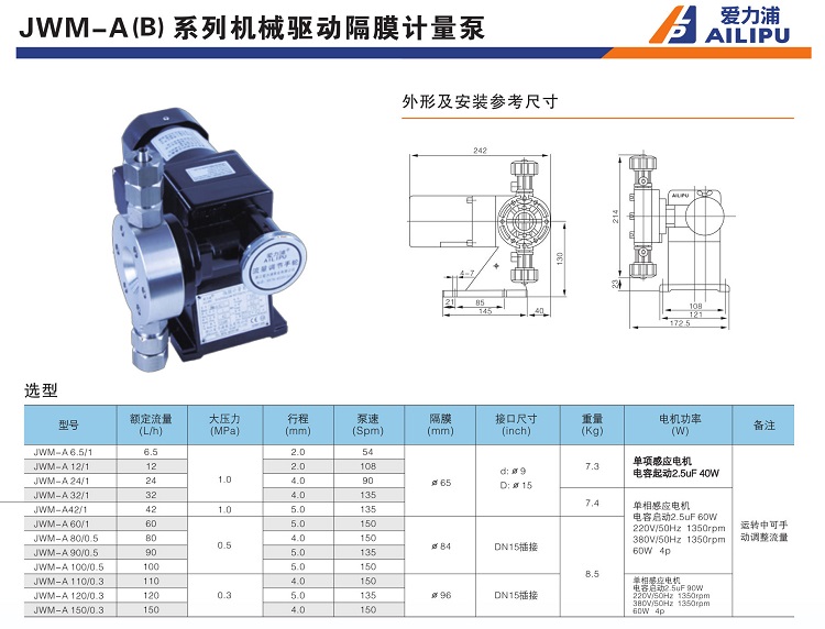 1、可用PVC、PTFE、PVDF、SS304、SS316等作為泵頭材料