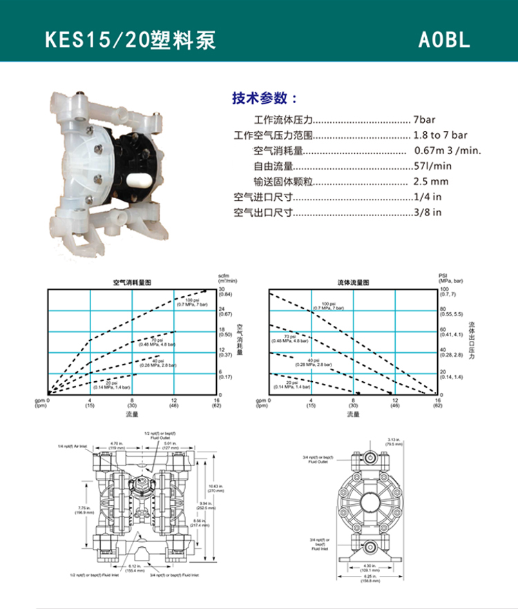 AOBL氣動隔膜泵KES15/20塑料泵耐腐蝕耐磨氣動泵膜片可選