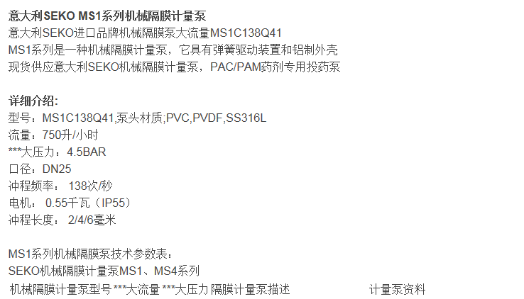 SEKO賽高MS1系列機械隔膜計量泵