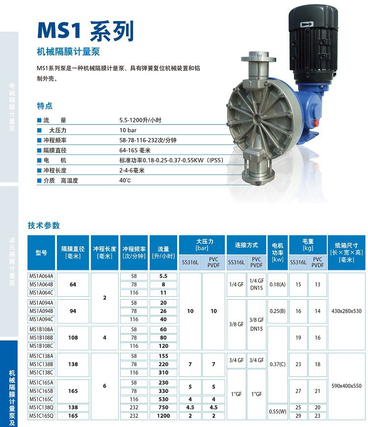 ( SEKO賽高) 機械隔膜計量泵MS1系列PVC泵頭耐酸堿耐腐蝕泵泵頭可選