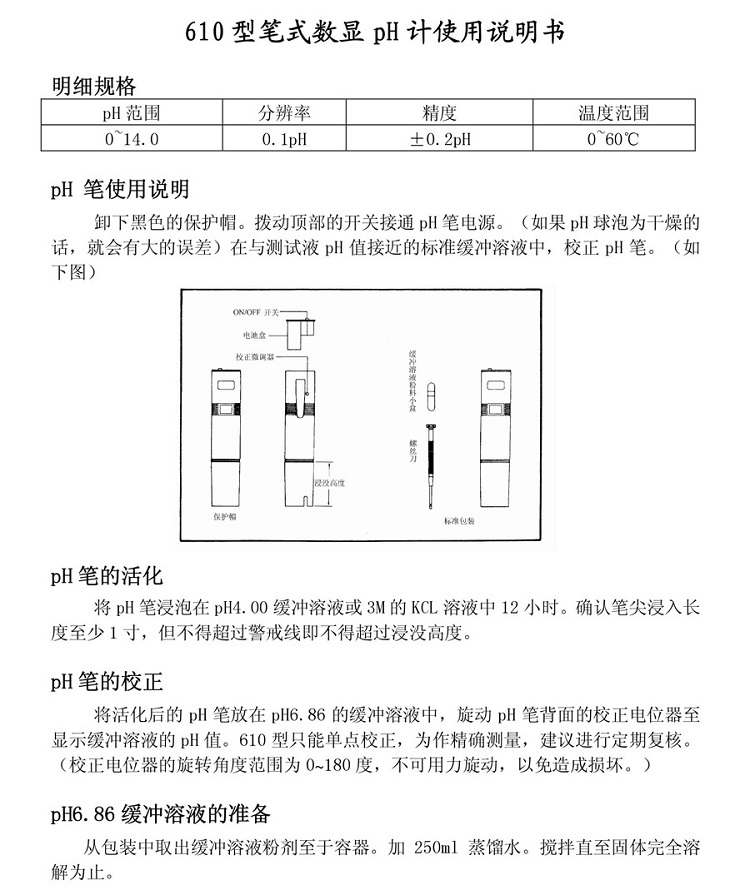 參數:單點校正/0~14/0.1pH/無溫補