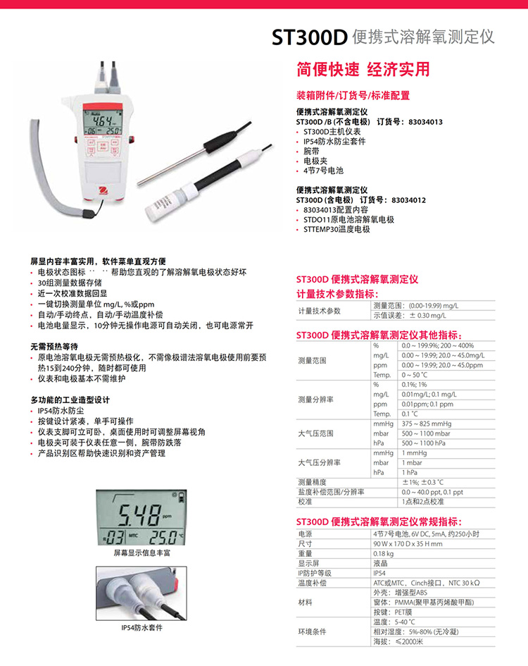 奧豪斯便攜式溶解氧測定儀ST300D/400D防水防塵工業(yè)在線do溶氧儀