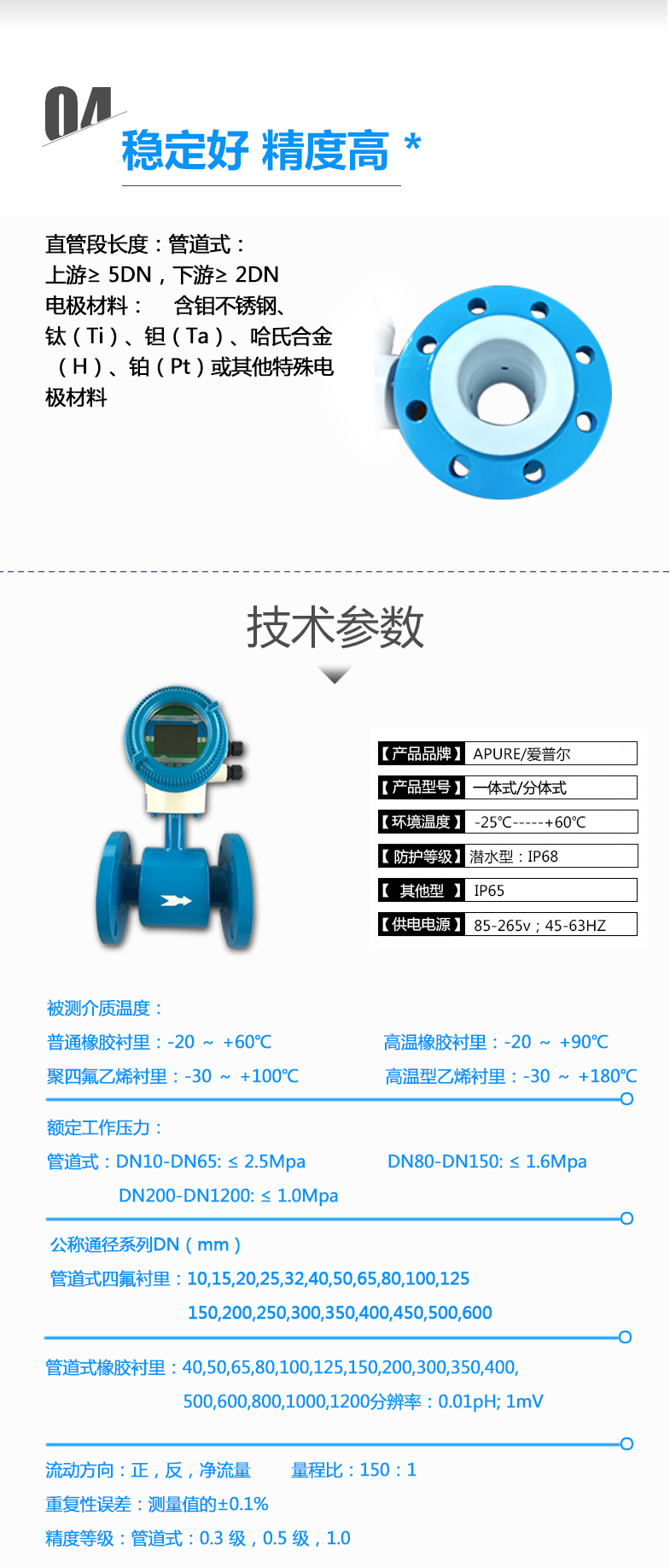 Apure愛普爾智能電磁流量計AYT一體式化工污水測量多規格可選