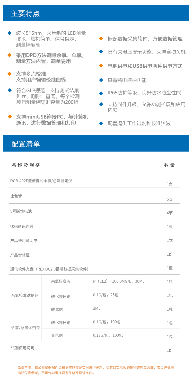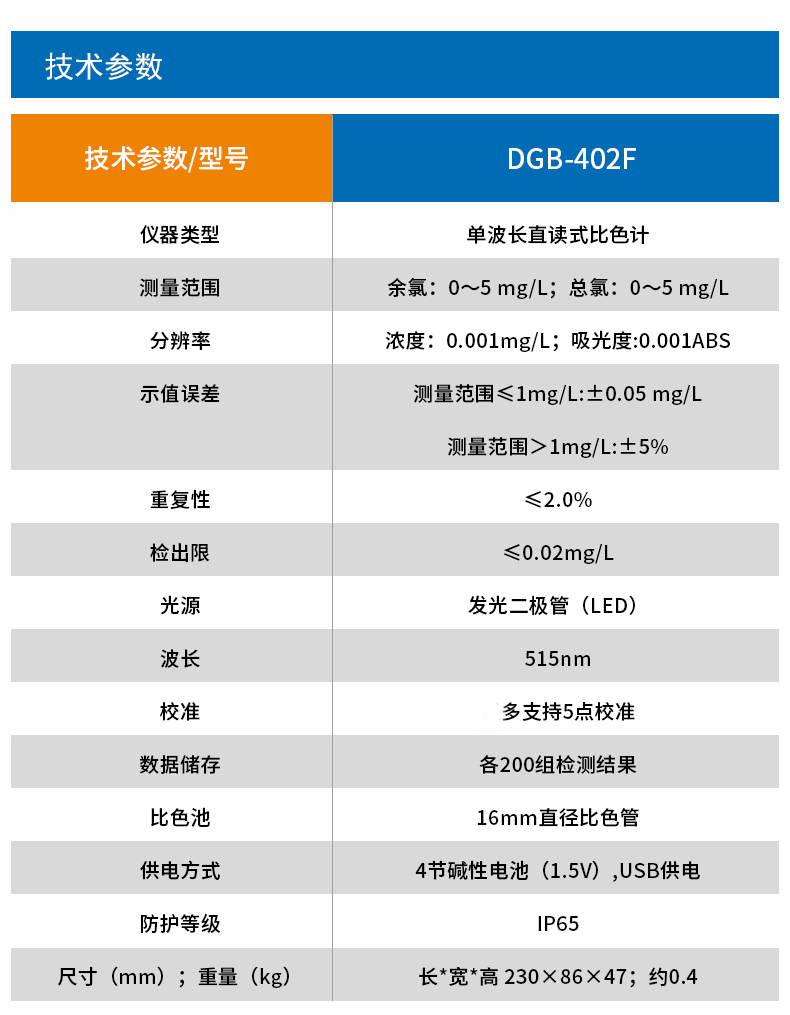 雷磁(leici)DGB-402F型便攜式余氯總氯測定儀水質分析儀標配套裝自動讀數