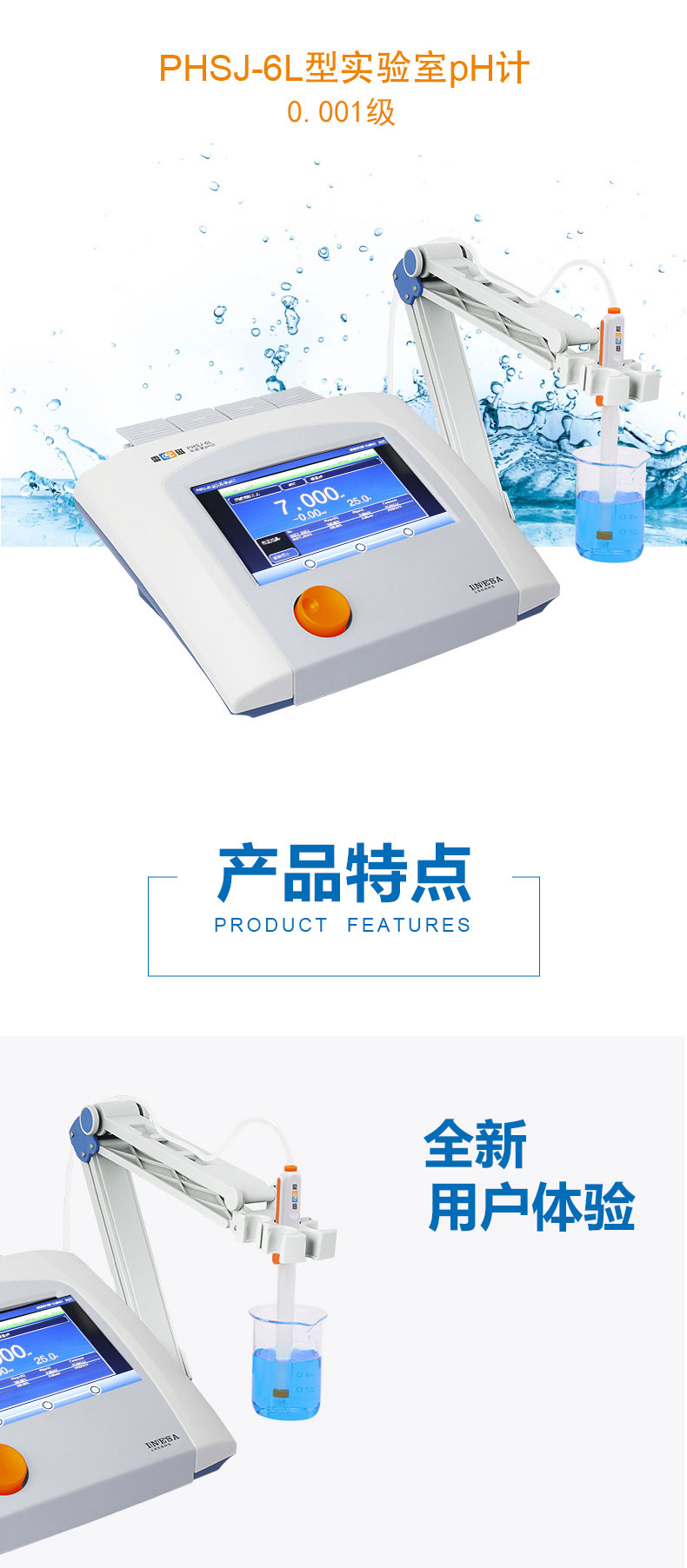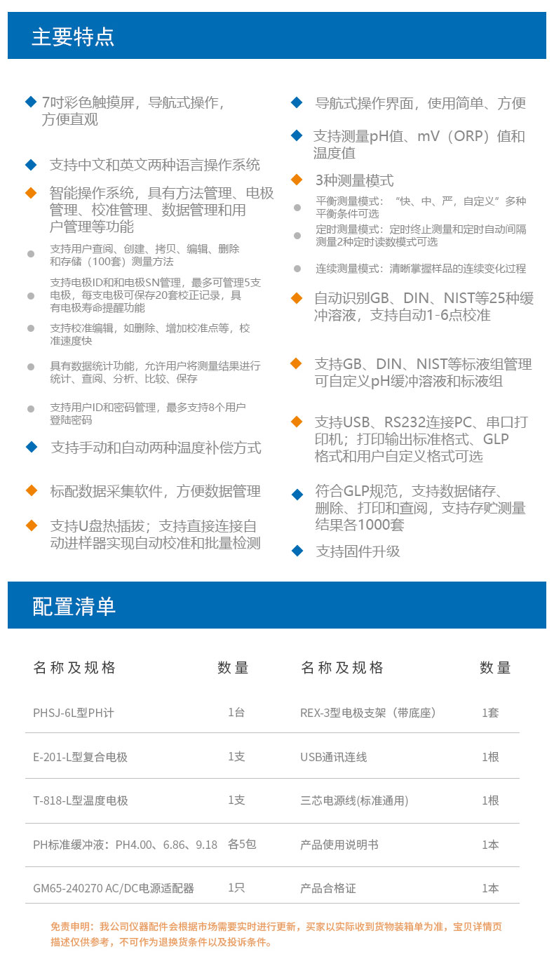 雷磁(leici)臺式PHSJ-6L實驗室pH計標配套裝自動溫度補償PH檢測儀酸度計