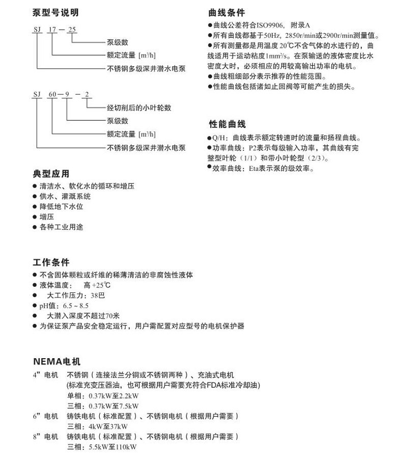 南方SJ不銹鋼多級深井潛水電泵配用潛水電機,替代傳統(tǒng)長軸式聯(lián)接的深井泵,泵內(nèi)裝有止回閥,以防止停機逆流及管路水錘對泵的沖擊。