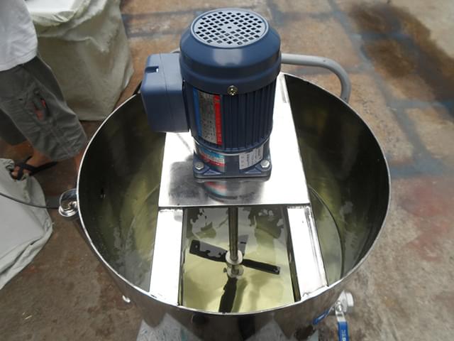 工業不銹鋼電動液體攪拌機KD-50型與桶安裝效果圖: