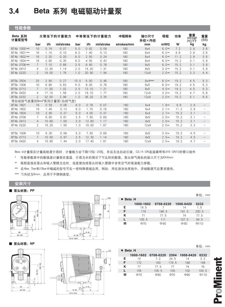 | Beta型號 | 壓力 | 流量 | 沖程流量 | 沖程頻率 | 連接尺寸 | 吸程 |