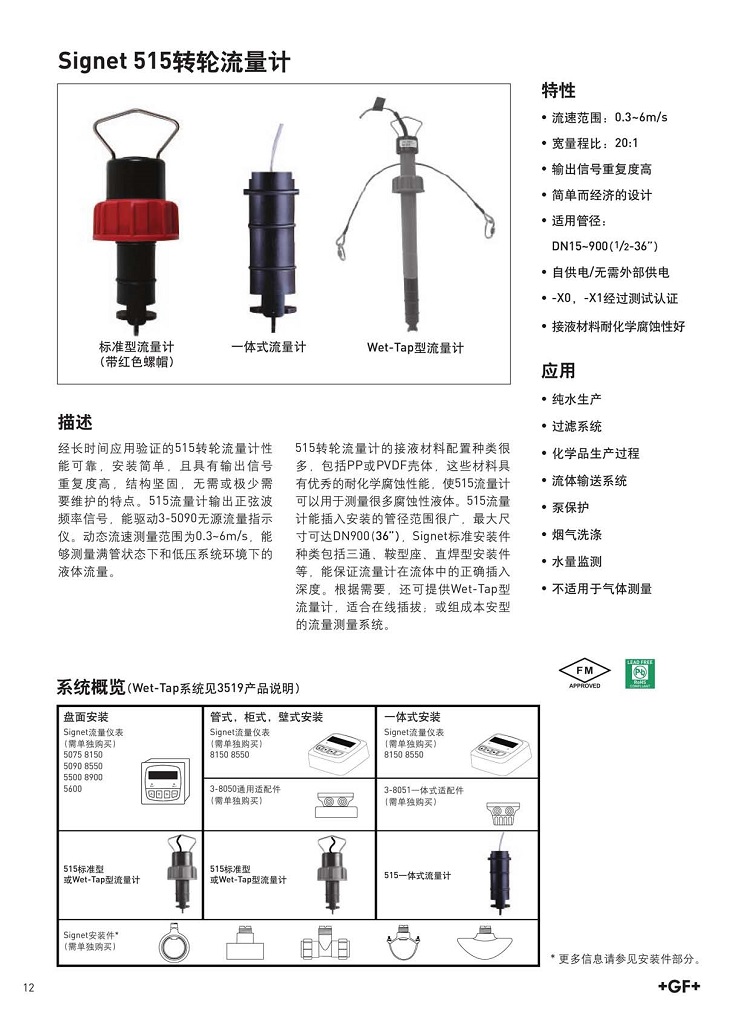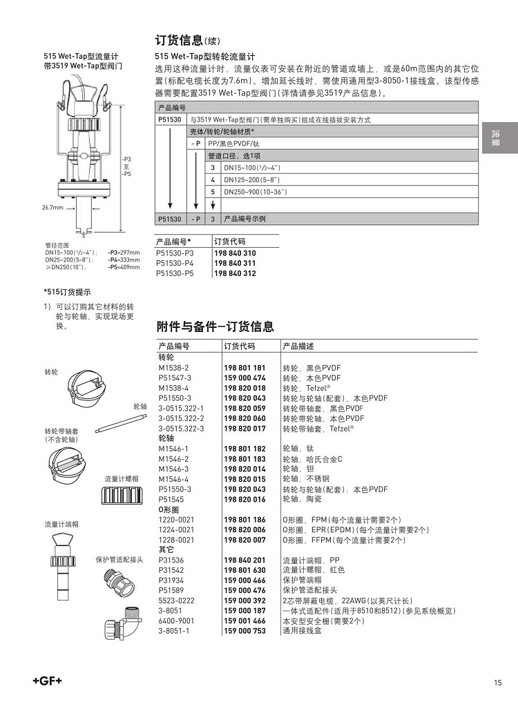 GF流量計(jì)515轉(zhuǎn)輪式流量計(jì)傳感器 純水流量測量儀器探頭