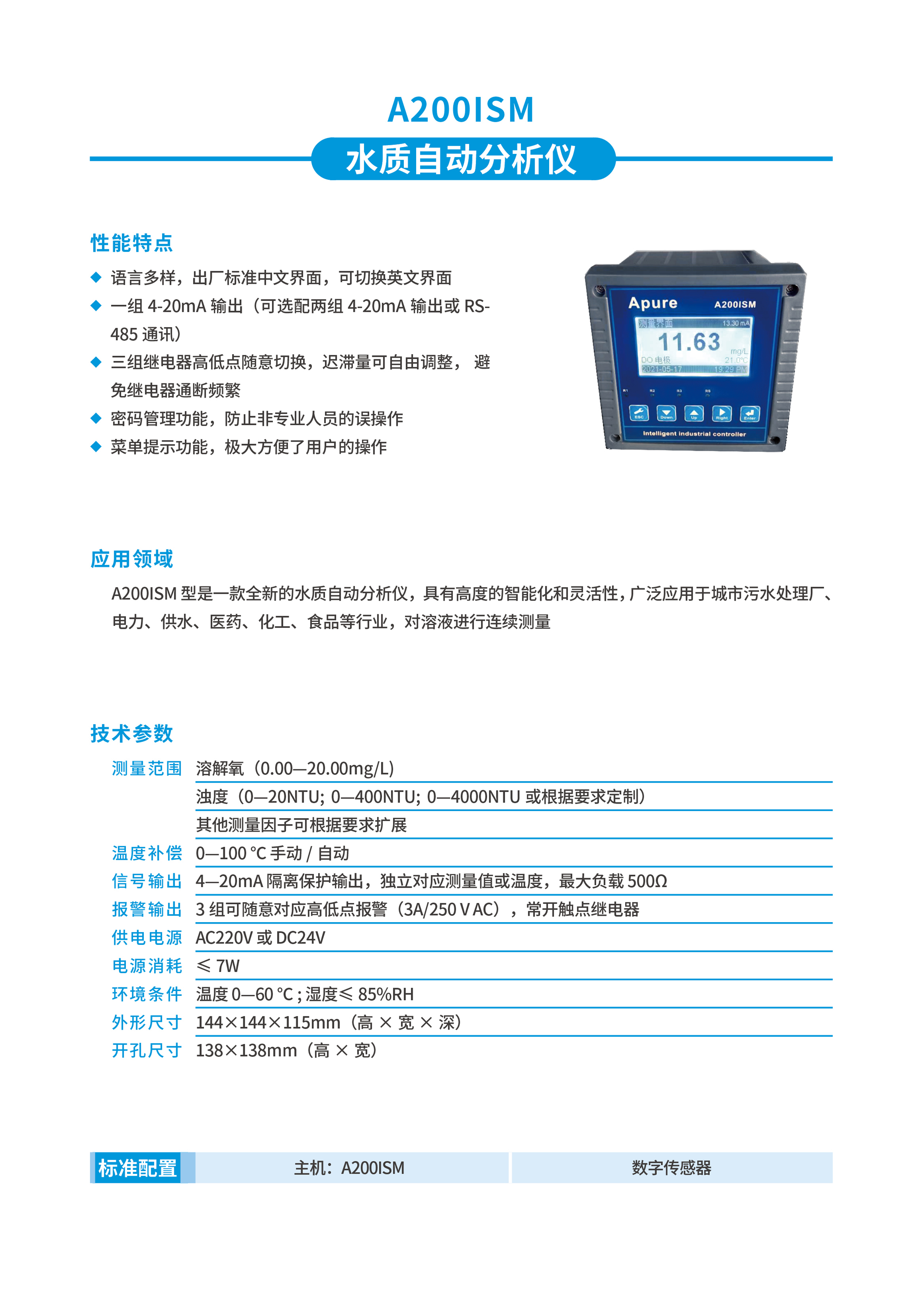 Apure水質(zhì)自動(dòng)分析儀A200ISM臺(tái)式溶氧測(cè)試儀濁度檢測(cè)儀